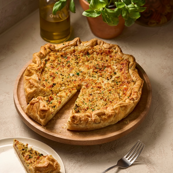 Galette made with Barber's Vintage Cheddar cheese and Wiltshire style ham hock in a creamy sauce within a puff pastry case.