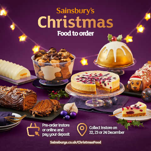 Food to order Pre-order instore or online and Collect instore on pay your deposit 22, 23 or 24 December Sainsburys.co.uk/ChristmasFood