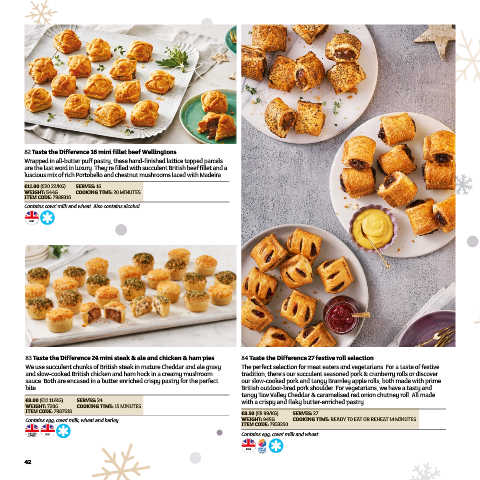 83 Taste the Difference 24 mini steak & ale and chicken & ham pies 84 Taste the Difference 27 festive roll selection